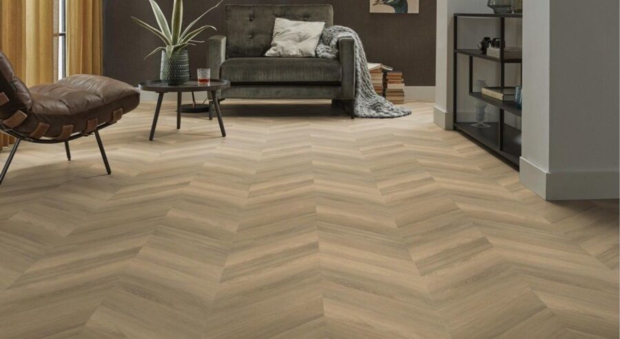 Een Hongaarse Punt vloer is een stijlvolle legmethode waarbij houten planken in een scherpe V vorm tegen elkaar worden gelegd, meestal onder een hoek van 45 of 60 graden. De kopse kanten van de planken worden schuin afgezaagd, zodat ze perfect aansluiten en een strak, symmetrisch patroon vormen.