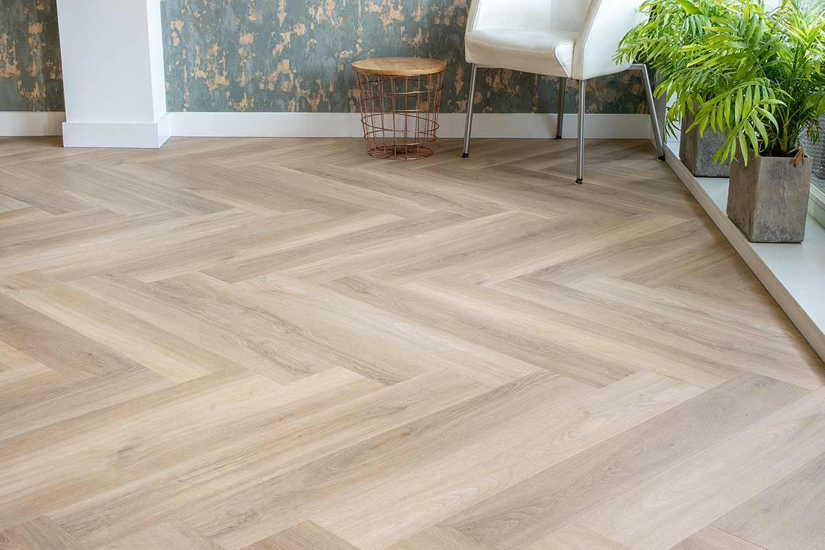 Een walvisgraat vloer is een moderne variant op het bekende visgraatpatroon en wordt steeds populairder bij vloeren van PVC en laminaat. Het patroon lijkt sterk op visgraat, maar het grote verschil is dat de planken bij walvisgraat veel breder en langer zijn. Hierdoor ontstaat een krachtiger en rustiger effect, terwijl je toch de luxe uitstraling van een visgraatvloer behoudt.
